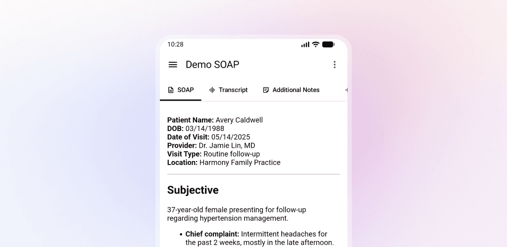 In addition to the primary transcribed note, patient visits often require tracking logistics, follow-up actions, or specific administrative details. The Medical Scribe app introduces a dedicated feature for tracking additional notes within the visit.