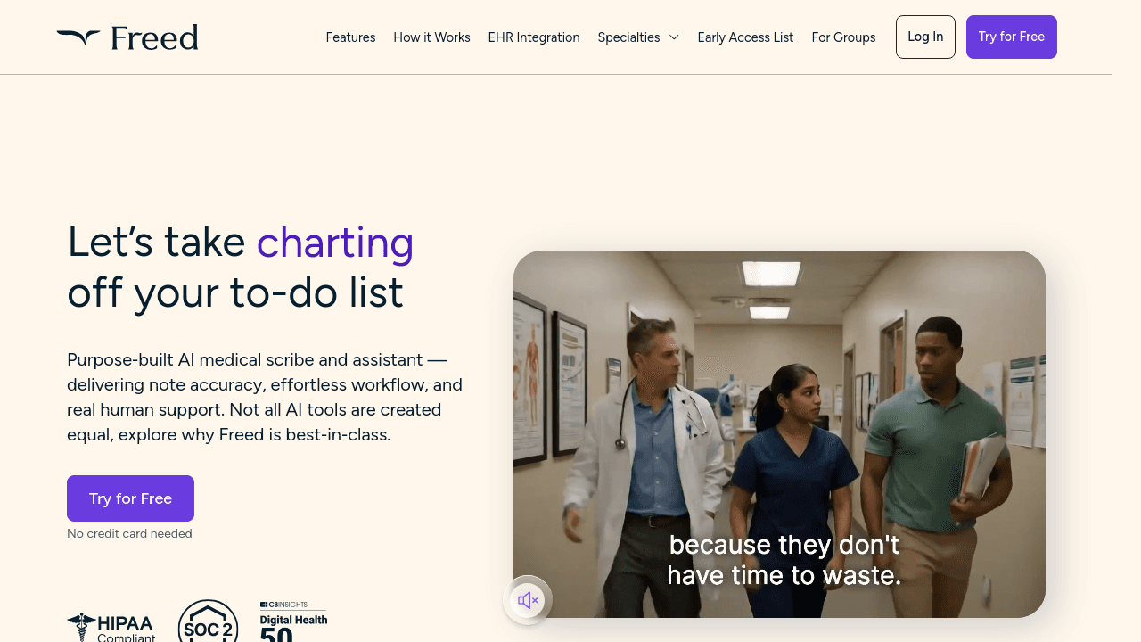 Why It Stands Out: Freed AI prioritizes efficiency and ease of use, making it an attractive option for smaller offices that want to adopt AI charting without complex technical requirements. The speed at which it produces notes is notable, although some users find they need to spend a bit more time editing compared to premium ambient solutions.