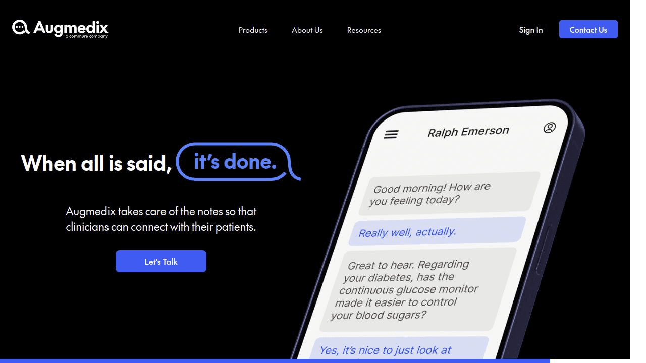 Why It Stands Out: Augmedix provides a versatile range of services, allowing clinics to choose between automated AI or human-in-the-loop support. Their dedicated solution for Emergency Departments handles the specific pressures of that environment effectively, though it comes at a premium compared to AI-only software.